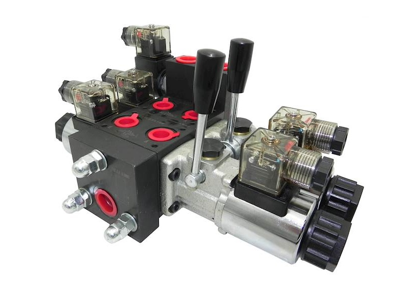 DISTRIBUITOR HIDRAULIC CETOP cu 2 SECȚIUNI 24 Vcc control ELECTRIC + MANUAL