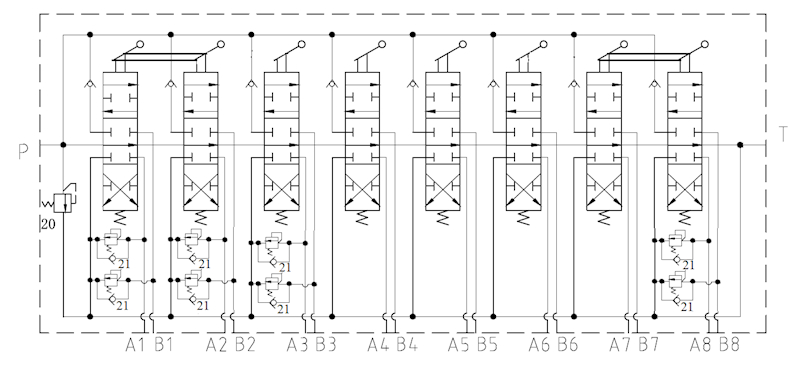 DISTRIBUITOR HIDRAULIC CU 8 SECȚIUNI, 90 lpm