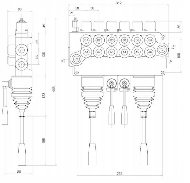 Denumire oficială: Distribuitor de CONTROL HIDRAULIC CU 6 SECȚIUNI 2JOY 06P40 6xA1+2XJOY